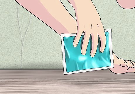 Ice your foot. If your foot in continually inflamed or irritating you, you can try to alleviate the swelling and pain with a cold compress or ice. Grab a cold compress from your freezer and a towel or cloth. Wrap the cold compress in the towel. Place the cold compress against your heel, concentrating the bulk of the compress on the area that hurts the most. Leave the compress on for 15 minutes. You can also use ice or ice water on your heel. Just make sure you don't expose your skin to the cold for too long so you don't hurt or burn your skin. You can repeat this multiple times a day. Try not to leave it on for more than 15-30 minutes. You don't want to stop the blood flow to your heel too much or you might injure yourself more. Ice is especially helpful after your heels are sore from walking or other activities.