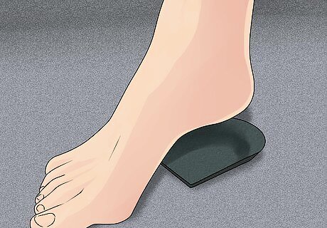 Cushion your foot. One way that podiatrist often treat heel spur pain is by giving you inserts to wear in your shoes. This can be simple heel cups to cushion and protect your heel. She may also give you more advanced orthotics, which are inserts worn inside your shoes to correct mechanical motion problems with your feet that led to your spurs. These take the pressure off of your heels and help change the way you walk. Your doctor may also suggest you tape your heel to provide pressure and cushioning for your heel.
