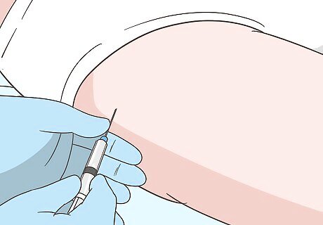 Have the bursa fluid analyzed in a lab to check for an infection. In some very rare cases, bursitis can be caused by an infection of the fluid in the bursa. If your doctor suspects this is what’s causing the pain in your hip, a specially trained orthopedist or rheumatologist may need to collect a sample using a needle and send it for laboratory testing. However, this test is rarely done because it poses a high risk of joint infection from penetrating and aspirating the bursa. Tip: Having the fluid taken out of your hip bursa may be momentarily painful. If they don’t offer, ask your doctor for a local anesthetic to numb the area before they take the sample.