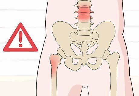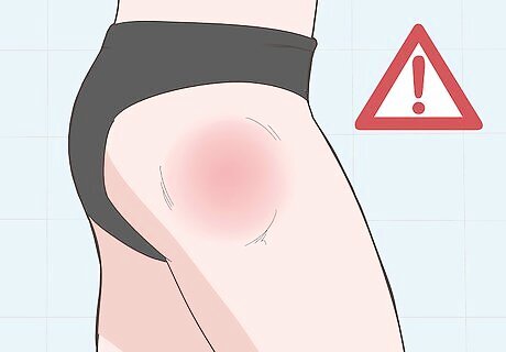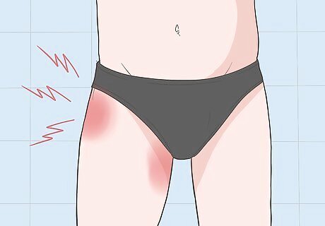 Inspect the skin over your hip for redness and swelling. Remove your clothing and inspect the painful hip area. If it looks red or swollen, this may be another sign of bursitis. However, these signs may not always be easily visible.Warning: See a doctor right away if the swelling is severe, or if you have a rash or bruising over the area.