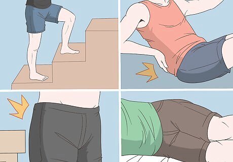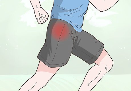 Identify ways you might have exerted or injured yourself. Injuries and overuse are the most common causes of bursitis. Consider if you’ve done any form of exercise or if you’ve been injured recently to determine a potential cause. Some things that might have led to developing bursitis include: Doing the same motion over and over again, such as taking a long bike ride or climbing stairs on a stair machine for a long time Falling onto your hip Bumping your hip into something Lying on your hip for a long period of time