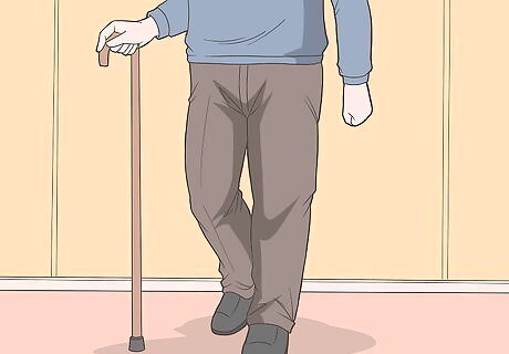 Walk with a cane or crutches to take the pressure off your hip. An assistive device, such as a cane, crutches, or even a walker can be a helpful way to let your hip rest while you go about your daily activities. Use the device to reduce the pressure on your hips when you walk by leaning into it and supporting yourself with your upper body. Ask your doctor to demonstrate the proper way to use a walker if you are unsure.