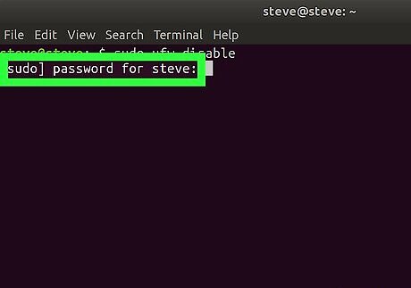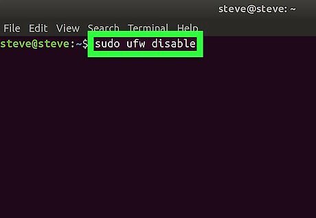 Type sudo ufw disable and press ↵ Enter. You will be prompted to enter the root password.