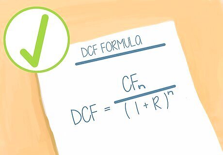 Arrive at the discounted value. Solve your equation to get your total discounted value. The result will be the present value of your future cash flows. Start by adding the discounted rate to the 1 within parentheses: This gives DCF = $ 1 , 000 ( 1.09 ) 1 + $ 2 , 000 ( 1.09 ) 2 + $ 3 , 000 ( 1.09 ) 3 {\displaystyle {\text{DCF}}={\frac {\$1,000}{(1.09)^{1}}}+{\frac {\$2,000}{(1.09)^{2}}}+{\frac {\$3,000}{(1.09)^{3}}}} {\text{DCF}}={\frac {\$1,000}{(1.09)^{{1}}}}+{\frac {\$2,000}{(1.09)^{{2}}}}+{\frac {\$3,000}{(1.09)^{{3}}}} From there, calculate the exponent. This is done by raising the "1.09" in parentheses to the power above it (1,2, or 3). Solve this by either typing "[lower value]^[exponent]" into Google or using the exponent button, x y {\displaystyle x^{y}} x^{y} on a calculator. After solving the exponent, the equation will be: DCF = $ 1 , 000 1.09 + $ 2 , 000 1.1881 + $ 3 , 000 1.295029 {\displaystyle {\text{DCF}}={\frac {\$1,000}{1.09}}+{\frac {\$2,000}{1.1881}}+{\frac {\$3,000}{1.295029}}} {\text{DCF}}={\frac {\$1,000}{1.09}}+{\frac {\$2,000}{1.1881}}+{\frac {\$3,000}{1.295029}} Next, divide each cash flow by the number underneath it. This yields: DCF = $ 917.43 + $ 1 , 683.36 + $ 2 , 316.55 {\displaystyle {\text{DCF}}=\$917.43+\$1,683.36+\$2,316.55} {\text{DCF}}=\$917.43+\$1,683.36+\$2,316.55 Finally, add up the present values to get the total, which is DCF = $ 4 , 917.34 {\displaystyle {\text{DCF}}=\$4,917.34} {\text{DCF}}=\$4,917.34.