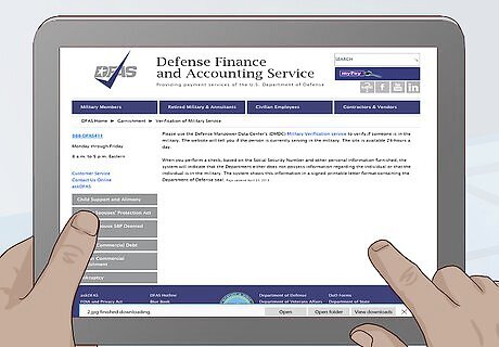 Perform a thorough search if she’s missing. You might not know where she’s moved to. You can still get divorced, but you must convince a judge you have performed a thorough search for her. Do the following: Talk to her family and friends. Ask where she has gone to and if they have a phone number or mailing address. Contact government agencies. Check with the Division of Motor Vehicles, the Post Office, and the Voter Registration office. Search the Internet. For $15 or so you can have a background check performed. Search whether your wife is in the military. You can verify military service at https://www.dfas.mil/garnishment/verifyservice.html. You will need your wife’s Social Security Number. Hire a private investigator, if necessary. You must perform a thorough search.