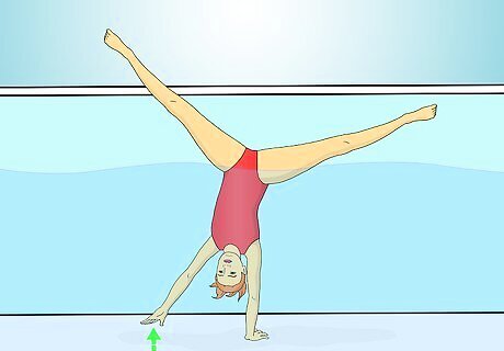 Perform and hold a two-handed handstand in water. After you have learned how to hold a two-handed handstand in water, you are now ready to start learning how to do one-handed handstands. Learning to do a one-handed handstand can be a lot more difficult and take a lot more time to learn than a two-handed handstand. Be patient.