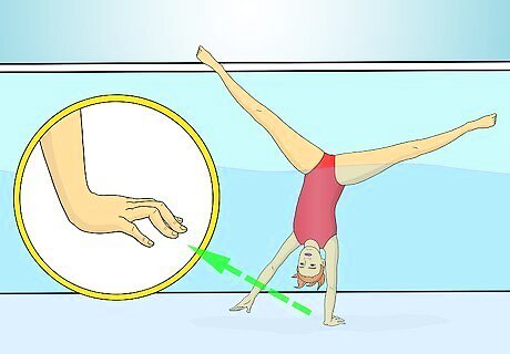 Hold your legs and feet together tightly. If you have difficulty holding your legs and feet together, try crossing your legs at the ankles. Try to keep your spine straight, directly inline with your legs. Remember to keep your legs straight. The straighter and closer together you can keep them, the easier it will be to maintain a handstand.