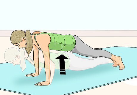 While exhaling, extend your arms and push your body away from the pilates mat, returning to the pre-push up position. You may repeat the pushup for the desired amount of repetitions.