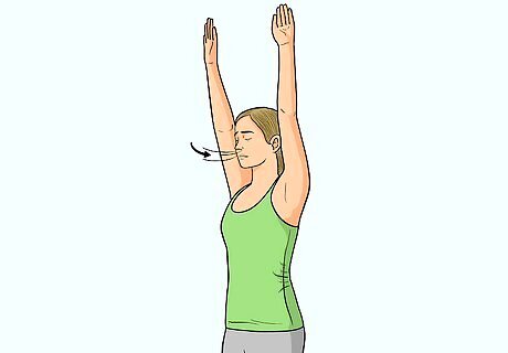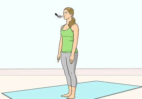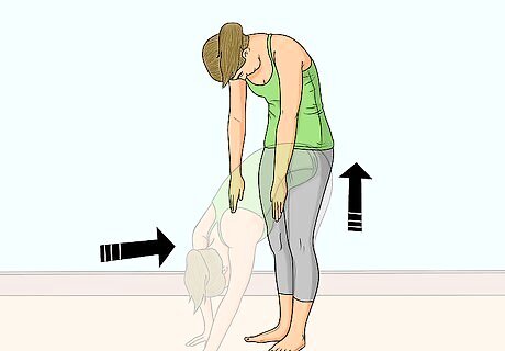 Exhale while standing up and returning to the starting position, vertebra by vertebra.