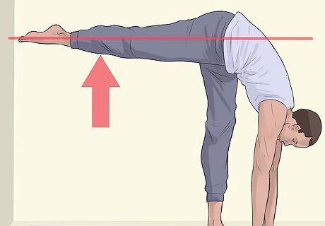 Draw your right leg up slowly and deliberately. When you have removed your body weight from your right leg, start bringing this leg upward. Pretend you are drawing a straight line with your toes on the right foot. Steadily raise your foot upward, reaching with your toes in an active pose.