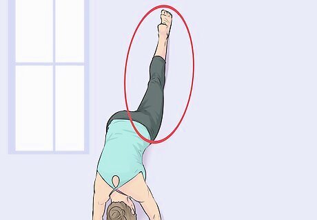 Inhale and walk your right leg up the wall. As you breathe in, press your back leg up higher. You may try resting your right foot gently on the wall to help in maintaining your balance. Try to straighten your standing leg as much as possible. Rest the top of your extended foot against the wall. If it’s possible, carefully walk your left leg back toward the wall so that your right leg is pressed closer to the wall.