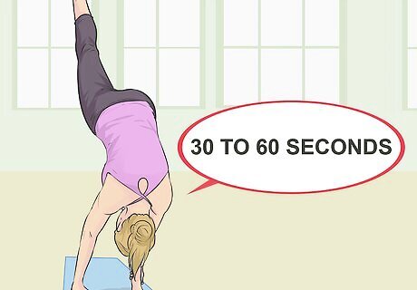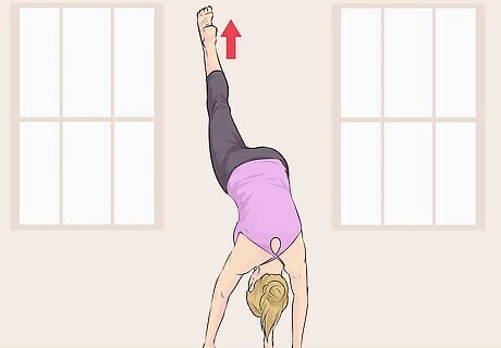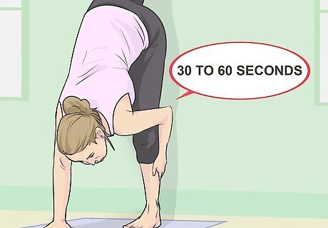 Repeat the pose for the other leg. Using the same technique, try the Standing Split on the other side of your body. Hold the pose for 30 to 60 seconds on this side. You may be able to do the Standing Split more easily on one side of your body than on the other. This can happen because you may favor one side over the other, or you may be stronger on one side than the other. Work to improve balance and flexibility for both sides of your body.