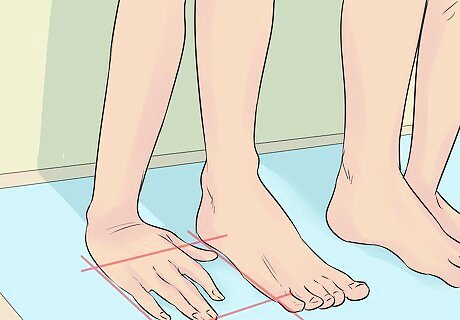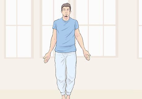 Start in Mountain Pose next to a wall. Stand about two feet away from a wall, and face away from the wall. Make sure you have plenty of room in front of you. Stand tall in Mountain Pose, with your feet firmly planted on the ground and your body standing tall. Find a focal point a few feet away from you and concentrate on that. This will help you with your balance. This visual focus is known in yoga as drishti. The principle is that by visually focusing on a single object or point, you are eliminating distractions. You will then sharpen your mental focus.