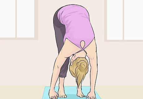 Turn your gaze to a point on the floor. As you’ve bent forward, your focus has shifted from directly in front of you to the floor. Find a spot to focus on, which will help you concentrate on your balance.