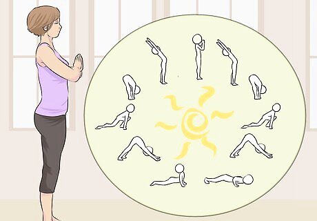 Warm up your body. The Standing Split requires that your leg muscles be pliable and warm. Don’t start off this pose without first warming up your body. Try doing a series of Sun Salutations to warm up your body. More importantly, this series will warm up your hamstrings, which is necessary for doing the Standing Split.