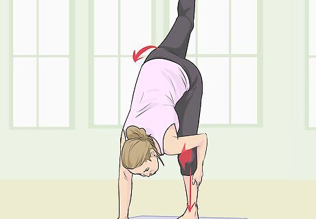 Shift your leg weight to your left leg. In preparation for lifting your right leg, readjust your body so that your weight is shared among your two hands and your left leg.