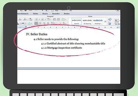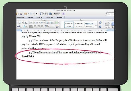 Require the seller to complete certain disclosures. State and federal law probably require that the seller make many different disclosures to potential buyers. You should include a provision listing the disclosures that the seller must make. For example, the seller must make a Disclosure and Acknowledgement of Lead-Based Paint if the property was built before 1978. Check with your real estate commission to see what other disclosures the seller must make.