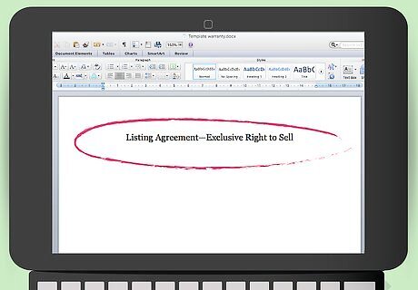 Insert a title. You can title your agreement “Listing Agreement—Exclusive Right to Sell” or “Listing Contract—Exclusive Right to Sell Real Estate.”