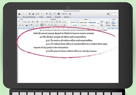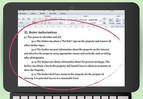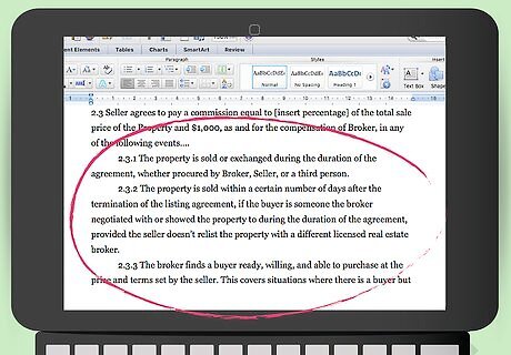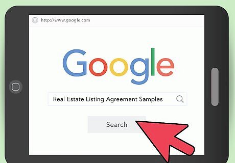 Find samples. Real estate is a heavily regulated industry. If you belong to a realtor’s association, then there may be a form you can use. Your association also probably requires that certain information be included in your broker listing agreement, so make sure you follow all rules. Brokers are also regulated by the state, and your state law might require that certain information be included in a listing agreement. Make sure to contact your state’s real estate commission to check. They may also have a form you can use as a guide.
