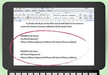 Insert signature blocks. Both the seller and the broker should sign and date the agreement. If there is more than one seller, then all sellers should sign the agreement.