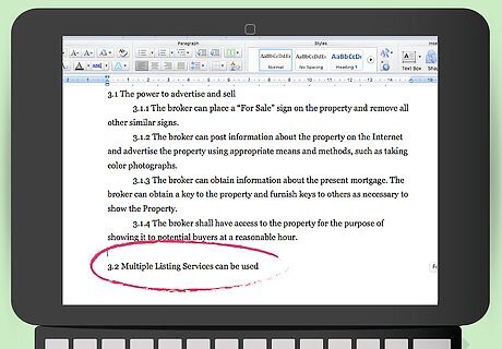 State whether the broker can use multiple listings. A Multiple Listing Service (MLS) allows brokers to share information about the property with other brokers. You should include a provision stating whether the broker can use an MLS or not.