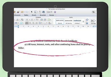 Require the seller to pay taxes. The taxes will probably be prorated based on the date when the property is sold. You should include a provision explaining what taxes will be prorated and which taxes must be paid.