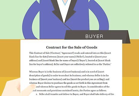Sign the completed agreement. Each side should have an agent or representative sign the agreement. Make a copy for the buyer and store the original contract in a secure location. You can also create digital scans of your contracts so that you have easy access to them.