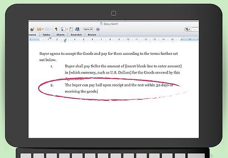 Explain how the buyer will make payment. There are several options for how the buyer can make payment. You should select the one that works best for you as the seller: The buyer can pay in full upon receipt. The buyer can pay in installments, as billed by the seller. If you choose this option, then the seller needs to draft a separate installment sales contract. The buyer can pay half upon receipt and the rest within 30 days of receiving the goods.