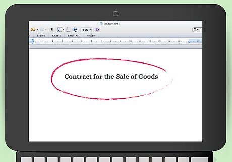Title the document. At the top of the page, you can center the title “Contract for the Sale of Goods” between the left- and right-hand margins. If you want, you can make the title bold or in all caps so that it stands out.