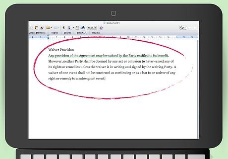 Include a waiver provision. Sometimes it might be easier to complete a transaction if one side waives its rights under the contract. For example, a buyer might want to waive its right to inspection and just pay up. You can explain the situations in which a waiver would be effective. For example, you could write: “Any provision of the Agreement may be waived by the Party entitled to its benefit. However, neither Party shall be deemed by any act or omission to have waived any of its rights or remedies unless the waiver is in writing and signed by the waiving Party. A waiver of one event shall not be construed as continuing or as a bar to or waiver of any right or remedy to a subsequent event.”