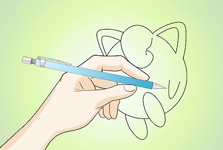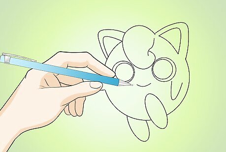 In the middle portion of the circle, erase the line there on the left side only and draw a small sideways v. Make sure the pointed part is facing the outside of Jigglypuff.