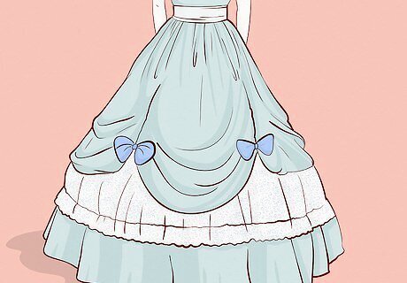Put on your skirt. Simply pull it over, tuck your blouse in, and button. Remember that a lady's hoop would never show. Your skirt should fall about 2–4 inches (5.1–10.2 cm) from the ground, without dragging.