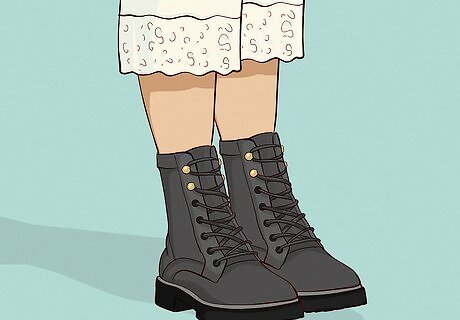 Lace up your shoes. The shoes worn at the time would have been an unattractive lace-up boot, likely in black or brown. They lace like sneakers, but take a large amount of time to put on. If you are going only to dance, you may wish to wear anything from white house slippers to pink ballet shoes to flats.
