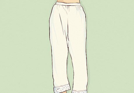 Put on your pantalettes. Pantalettes are a lady's version of pantaloons. They are basically capri-length, very light cotton undergarments. Back in the 1860s, all pantalettes had a drawstring tie, but many that you will find today will simply have an elastic waistband. The more authentic version of pantalettes have no crotch, but again, many you find today do have a crotch. Most women also choose to wear panties with their pantalettes, although real Southern belles did not. Simply pull your pantalettes up to wherever you like to pull your jeans to, and tuck your chemise into them. In a pinch, or in order to save money, you can simply buy an inexpensive pair of capri-length pajama pants to use as pantalettes.