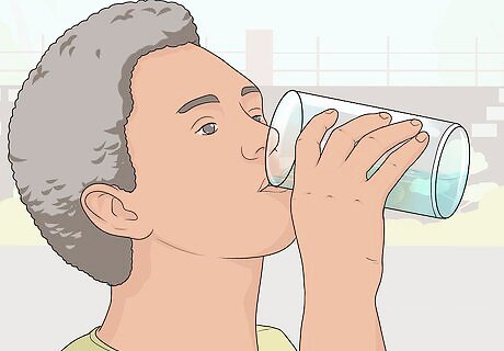 Reach for a glass of water after a workout or in hot weather. It’s important to drink more water any time you’ve been sweating, such as when you’re exercising or after spending time in a hot environment. Always keep a bottle of water on hand and take sips from it often when you're hot or sweaty.