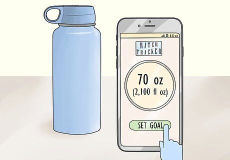 Set a goal for how much water you want to drink each day. This goal is up to you since there’s no right amount of water that you need to drink each day. Consider how much of your daily fluid intake is water and identify how much of it you’d like to be water. For example, if you drink 48 fl oz (1,400 mL) of water each day and you’d like to increase your intake to 70 fl oz (2,100 mL), then make this your goal.