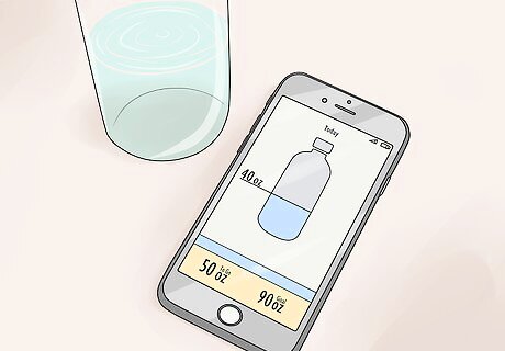 Download a water drinking app. There are apps that help you to track your water intake, such as My Water Balance, Daily Water, and Hydrate Daily. You can also track your water intake in food tracker apps, such as My Fitness Pal, Fat Secret, and YAZIO. Record your intake each time you have a bottle or a glass of water. You can also keep a journal to keep track of the water you drink. You can also purchase a water bottle that connects with an app on your phone and tells you when you’ve reached your goal for the day. These can be expensive, but it might be a good option if you seriously struggle to remember to drink water or if you’re just a fan of gadgets!