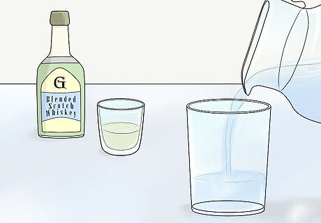 Alternate between alcoholic drinks and water at parties, bars, or meals. Alcohol dehydrates you so it’s important to drink water along with any alcoholic beverages you consume. Try to have a glass of water after every alcoholic beverage to stay hydrated. Moderation is best when it comes to drinking alcohol. Try not to exceed 1 drink per day if you’re a woman or 2 drinks per day if you’re a man. One drink is 12 fl oz (350 mL) of beer, 5 fl oz (150 mL) of wine, or 1.5 fl oz (44 mL) of spirits.