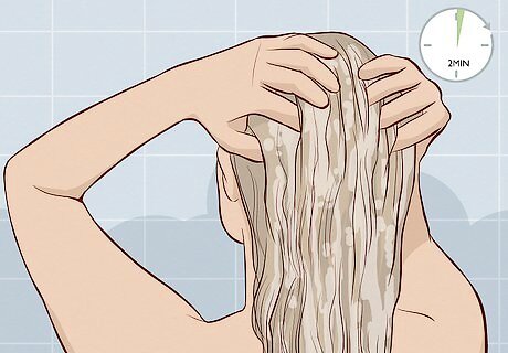 Allow the shampoo to sit for the time recommended on the bottle. Each brand will be different. Some will recommend that you only leave the shampoo in for 2 to 3 minutes, while others recommend that you leave it in for 10 to 15 minutes.