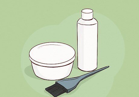 Mix the dye according to the instructions. Most dye kits are mixed in the same way: you add the dye to the developer, then shake the developer to mix it up. Sometimes, the dye comes in a bottle and sometimes it comes in a tube. Your dye kit will most likely contain a tube of conditioner. Set this aside for later. Some dye kits contain a little tube of oil. Add this to the dye.