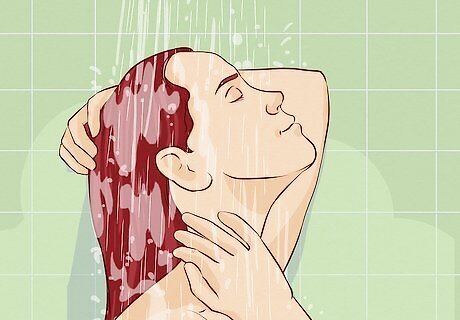 Rinse the dye out with cool water, then apply conditioner. Wash the dye out with cool water first. Once the water runs clear, apply a hydrating conditioner to your hair, and let it sit for 2 to 3 minutes. Rinse the conditioner out with cool water, then let your hair dry. Do not use any shampoo at this time. Your hair may look darker. Don't worry, it will lighten up.