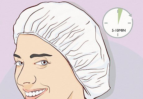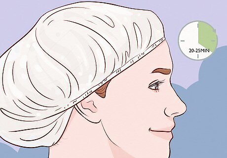 Allow the dye to sit for the recommended time. Each brand will be a little different, but most will tell you to wait 20 to 25 minutes. It would be a good idea to cover your head with a plastic shower cap during this time. The cap will help the dye work faster and keep your surroundings clean.