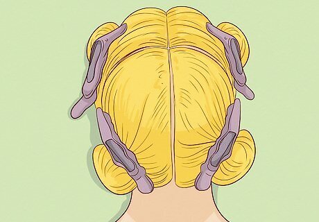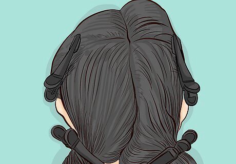 Part your hair into four sections. The first part should run vertically down the middle of your head. Pull these sections aside, and then part them one more time from ear to ear. Use clips or hair ties to separate the sections you're not working on.
