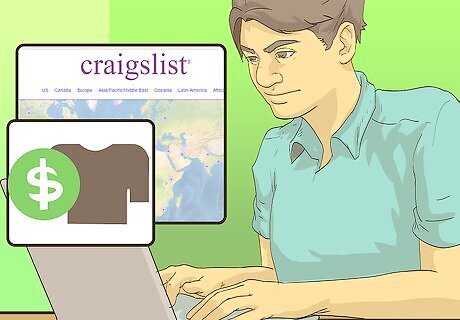 Sell your old clothes or home goods. Countless websites exist to help you get rid of your old clothes and unwanted items. Although you should not list every little sock or knick-knack you have, if you’ve made an investment into a piece of clothing, or an item you no longer want, get some money back! While eBay might still be the most popular means of selling old items, many new sites have popped up to give eBay some competition. These sites include Etsy, Poshmark, Thred Up, and Craigslist. Pay close attention to the rules of the site you are using. Etsy, for instance, requires goods to be handmade or vintage. Thred Up requires clothing to be in good condition. Do your research on the sites you use before posting. When using Craigslist or Facebook, be careful of divulging your information. Users have been advised to conduct transactions in public places, including the parking lot of your local police station.