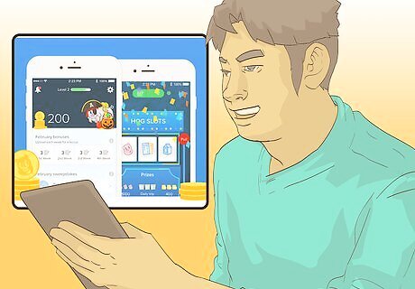 Download paying apps. Some apps will pay you just for having the app installed for a certain length of time while it gathers information about your usage habits. Others will pay you according to how often you go to the gym. If you have the phone space and you are willing to allow your internet history to be collected, this is a great way to earn small, passive income. Make sure you read the terms and agreements for apps such as this. Most are paying you to essentially gather data about you, and will use your data to learn more about your shopping habits and internet usage. Apps such as GymPact allow you to place wagers on yourself, paying out each time you exercise, but requiring a fee if you do not exercise. If you regularly go to the gym and rarely miss, this is a great way to earn extra money.