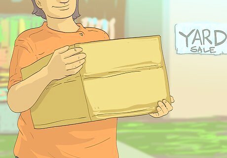 Have a yard sale. This is quite similar to selling online, except you're doing it in your front yard or garage. Set aside a morning to gather items, decide on prices, and pop a quick ad on your local Craigslist or city site. Using tables, create an attractive array of tables and furniture, placing a price sheet in a prominent place. Don’t be afraid to stand your ground when having a yard sale. Some people might expect to pay cents on the dollar for items, but you are allowed (and encouraged) to decline outrageous offers. Avoid having a yard sale unless you have a significant amount of items to sell. A single table filled with books and trinkets is unlikely to make any money.