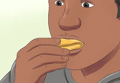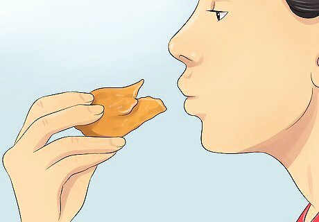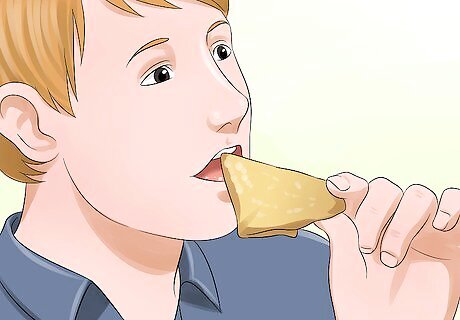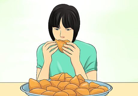 Savor each bite. Though samosas, with their wrapped-up filling, are a great food to take on the go, they also only take a few bites to devour. Make sure you chew slowly to really experience all the flavors. The slower you chew, the more time you allow for the rest of the samosa to cool down. If you’re eating on a plate, tear the samosa apart first to experience the visual appeal. All of the colors and textures of the filling will make the meal that much more satisfying.