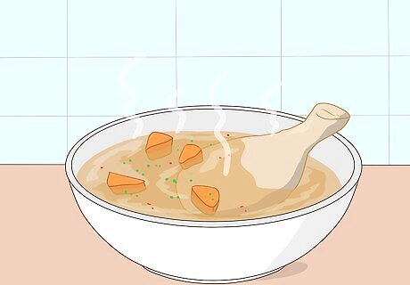 Trust in the healing power of chicken soup or bone broth. Mom gave you chicken soup when you were sick for a reason. The broth contains carnosine, a compound that battles against inflammation. The warmth of soup or broth can also alleviate congestion. Chicken soup contains immunity-boosting lean protein, nutrient-rich vegetables, and the broth keeps you hydrated. Inhaling deeply over a bowl can also unblock a stuffed up nose or moisten a dry throat.