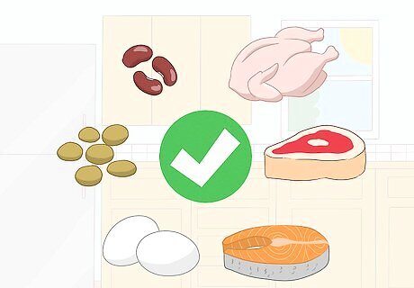 Include lean protein in your diet. Lean proteins are important for any healthy diet, but they are especially important when boosting your immune system. They help your body create antibodies that fight off infections like the flu. Lean proteins are those without a lot of fat. They include foods like chicken and turkey with the skin removed, fish, shellfish, and lean beef like sirloin and round cuts. Vegetarians can boost their lean protein intake through foods like eggs, lentils, and beans.
