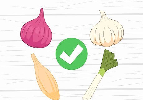 Increase the amount of garlic, herbs, and spices in your food. Some herbs and spices can kill germs and reduce inflammation in the body. Members of the allium family, such as onions, garlic, shallots, and leeks, are anti-inflammatory and may soothe a sore throat. Some people use oregano oil to reduce the symptoms of respiratory problems, such as sore throats and coughs. It has anti-inflammatory, antibacterial, and antiviral properties. The herbs rosemary and thyme are also antioxidants.